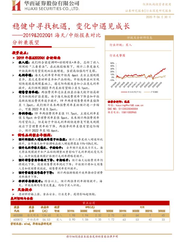 【华西证券】【20200630】2019&2020Q1海天中炬报表对比分析兼展望:稳健中寻找机遇,变化中遇见成长-42页