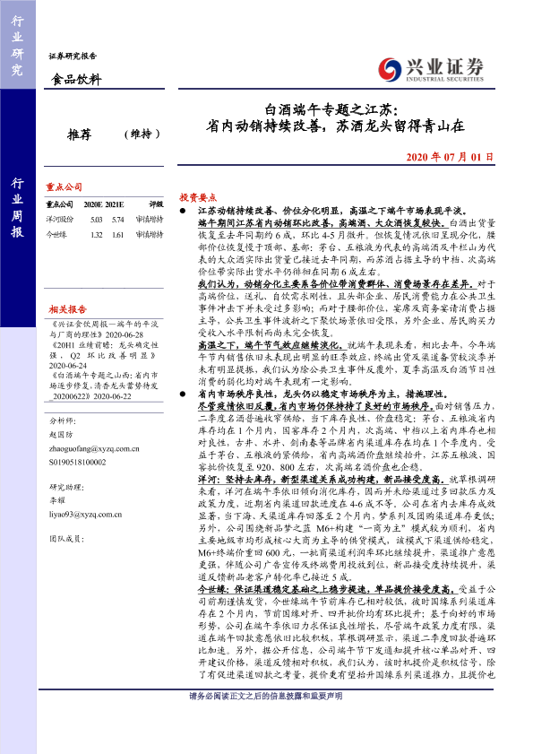 【兴业证券】【20200701】白酒端午专题之江苏:省内动销持续改善,苏酒龙头留得青山在-3页