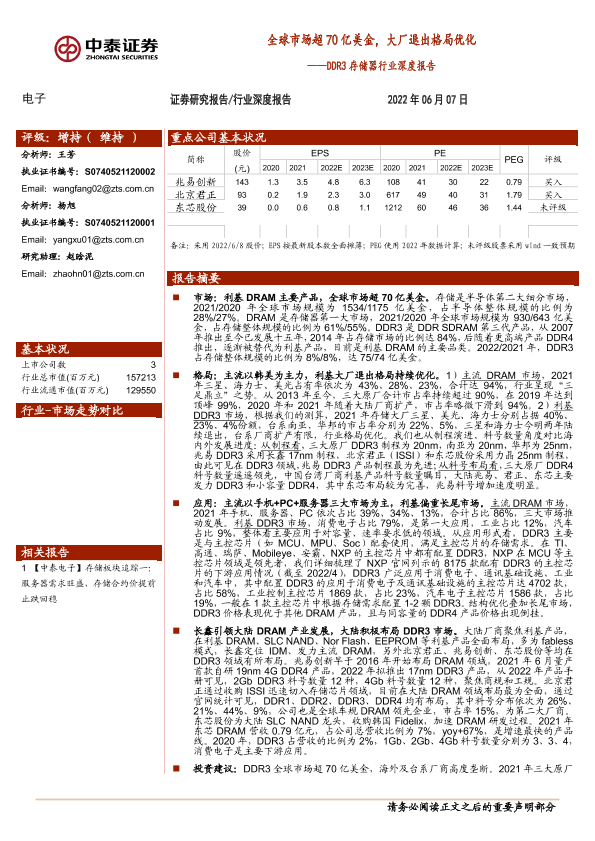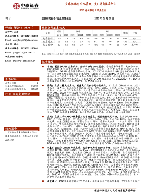 【中泰证券】【20220607】DDR3存储器行业深度报告:全球市场超70亿美金,大厂退出格局优化-42页