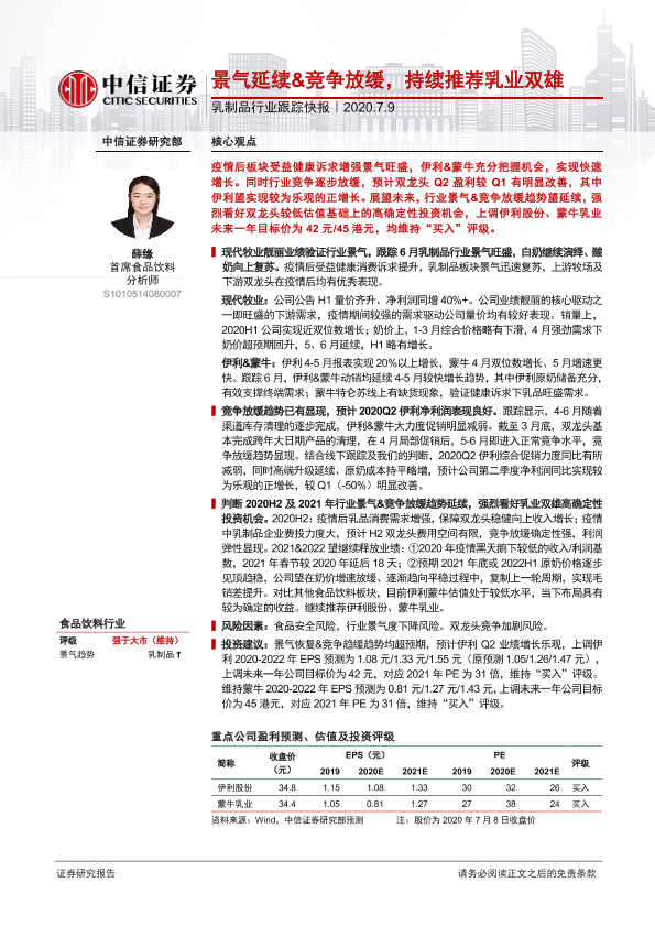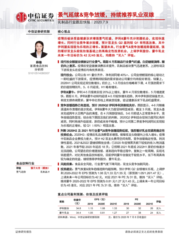 【中信证券】【20200709】乳制品行业跟踪快报:景气延续&竞争放缓,持续推荐乳业双雄-2页