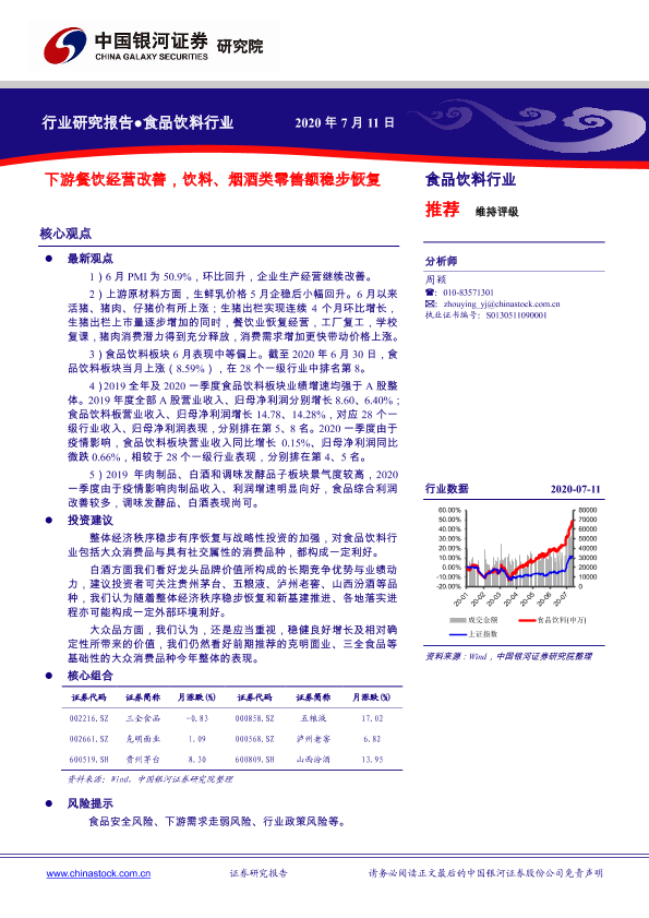 【银河证券】【20200711】食品饮料行业:下游餐饮经营改善,饮料、烟酒类零售额稳步恢复-51页