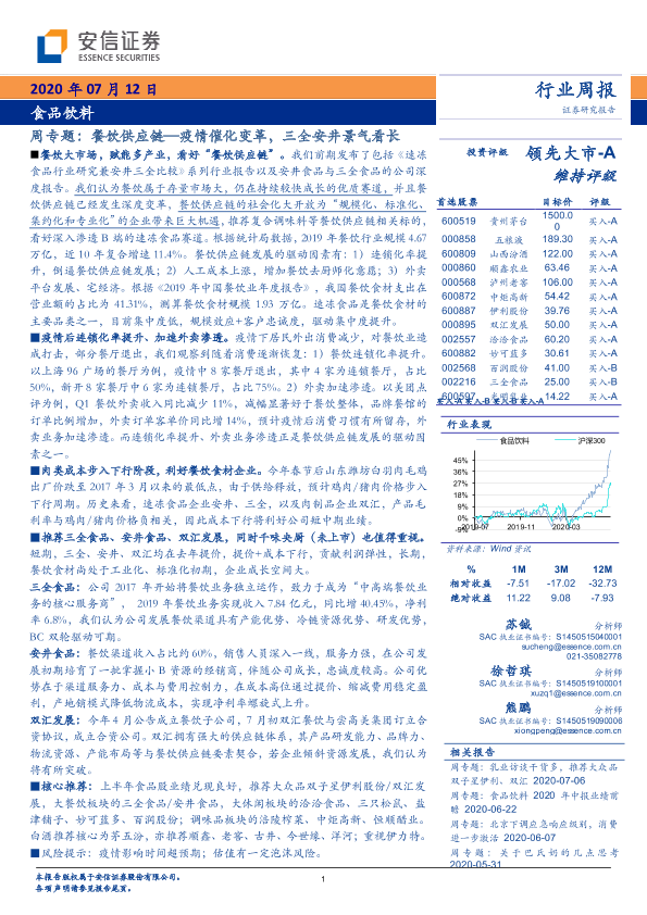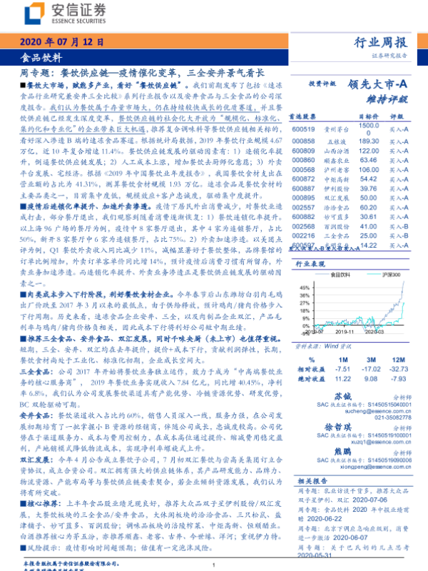 【安信证券】【20200712】食品饮料周专题:餐饮供应链-疫情催化变革,三全安井景气看长-20页