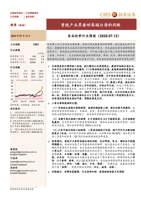 【海通证券】【20200712】食品饮料行业周报:重视产业界看好高端白酒的判断-9页