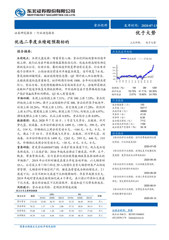 【东北证券】【20200713】食品饮料行业动态报告:优选二季度业绩超预期标的-11页