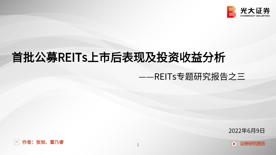 【光大证券】【20220609】REITs专题研究报告之三:首批公募REITs上市后表现及投资收益分析-20页