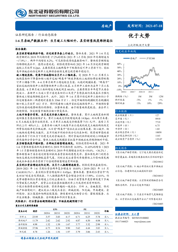 【东北证券】【20210718】1-6月房地产数据点评:当月竣工大幅回升,真实销售热度维持高位-18页