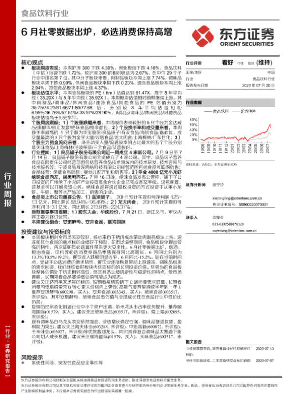 【东方证券】【20200720】食品饮料行业:6月社零数据出炉,必选消费保持高增-13页