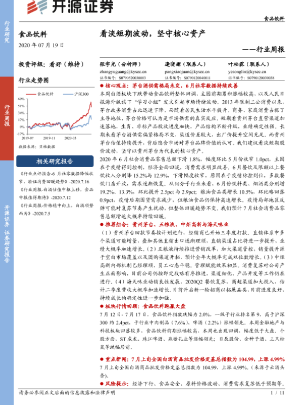 【开源证券】【20200719】20200719-开源证券-食品饮料行业周报:看淡短期波动,坚守核心资产-11页
