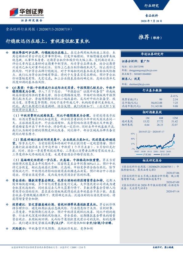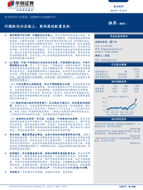 【华创证券】【20200720】20200720-华创证券-食品饮料行业周报:行稳致远仍在路上,重视逢低配置良机-7页