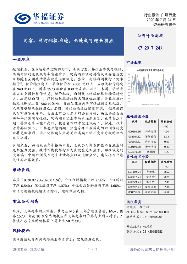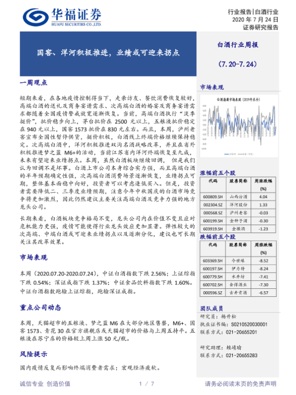 【华福证券】【20200724】20200724-华福证券-白酒行业周报:国窖、洋河积极推进,业绩或可迎来拐点-7页