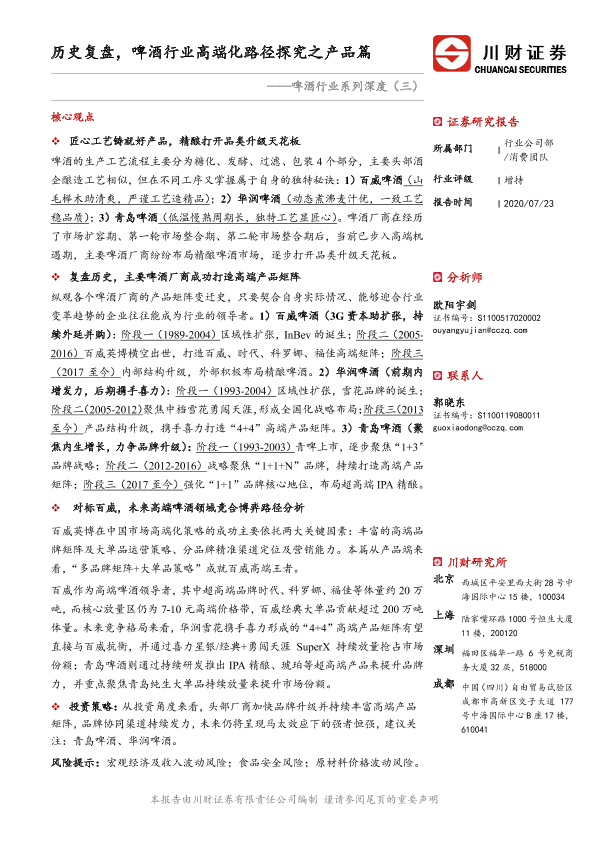 【川财证券】【20200723】啤酒行业系列深度(三):历史复盘,啤酒行业高端化路径探究之产品篇-24页