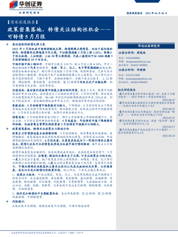 【华创证券】【20220606】可转债5月月报:政策密集落地,转债关注结构性机会-21页