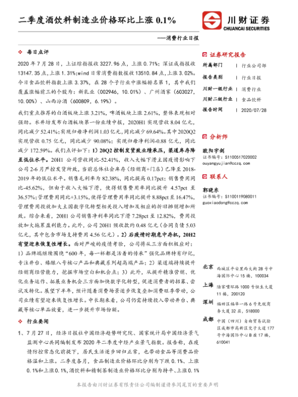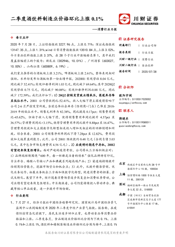 【川财证券】【20200728】二季度酒饮料制造业价格环比上涨0.1%-3页