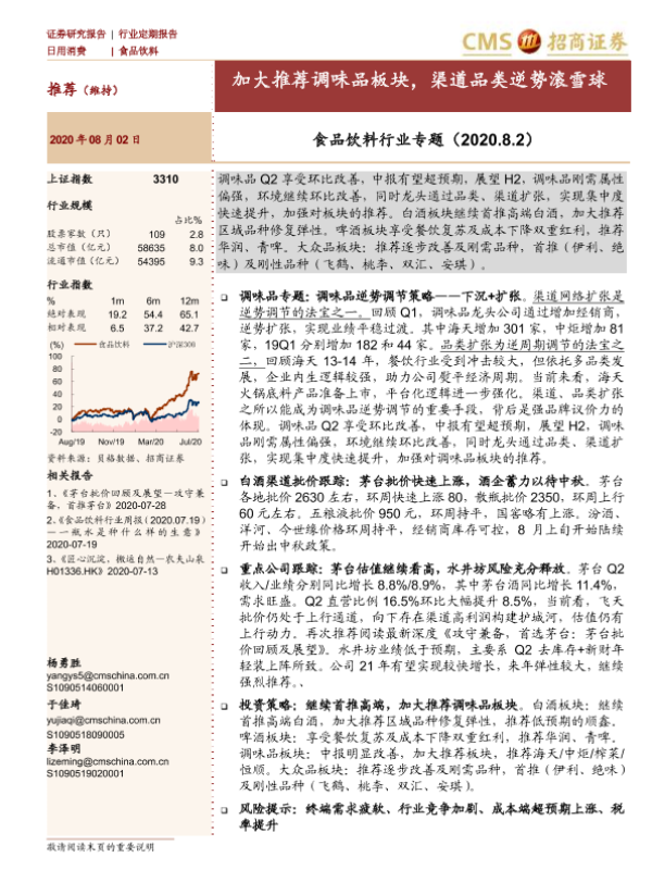【海通证券】【20200802】食品饮料行业专题:加大推荐调味品板块,渠道品类逆势滚雪球-10页