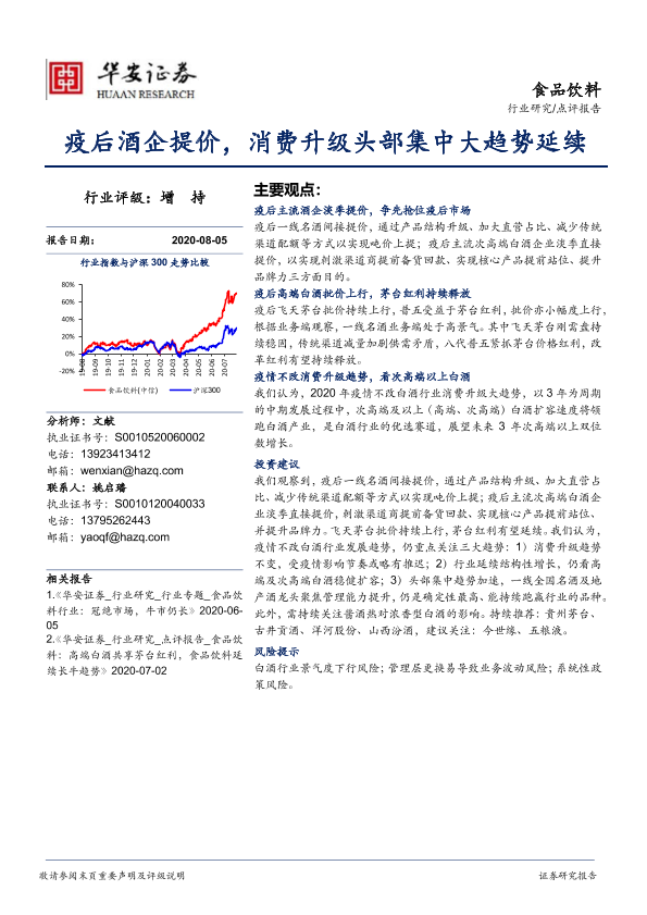 【华安证券】【20200805】食品饮料:疫后酒企提价,消费升级头部集中大趋势延续-12页