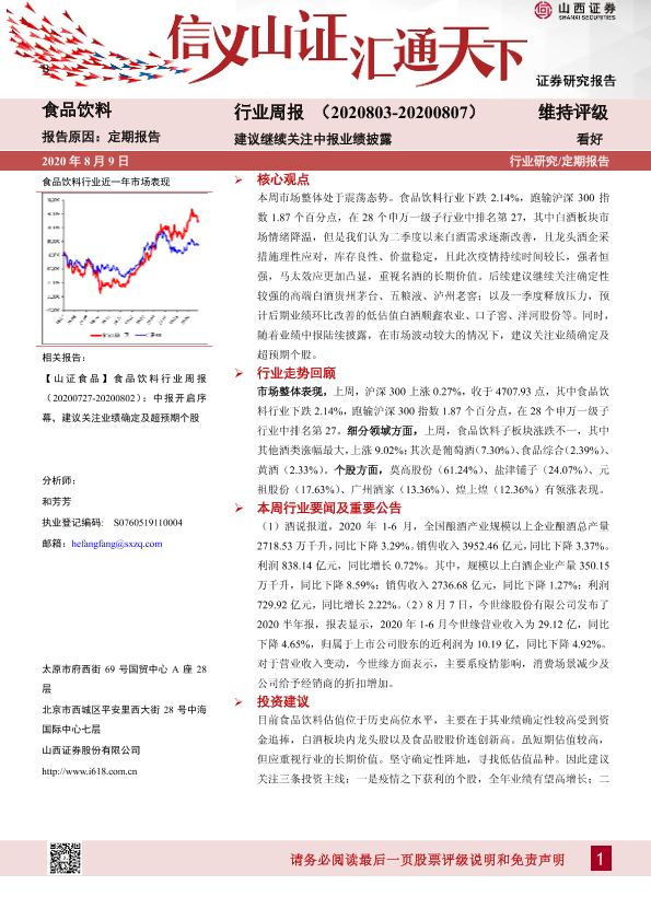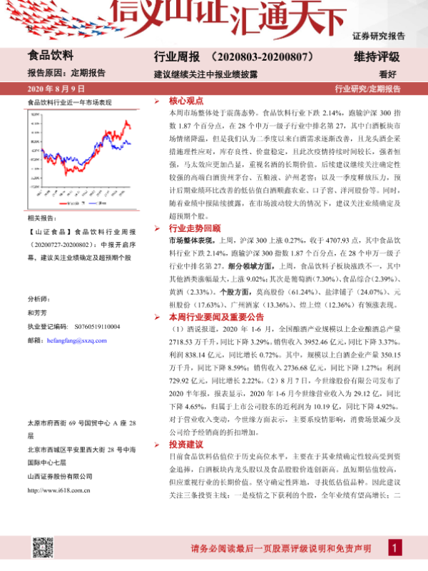 【山西证券】【20200809】20200809-山西证券-食品饮料行业周报:建议继续关注中报业绩披露-10页