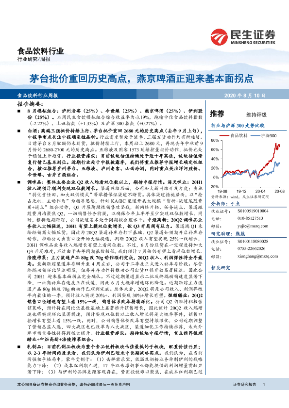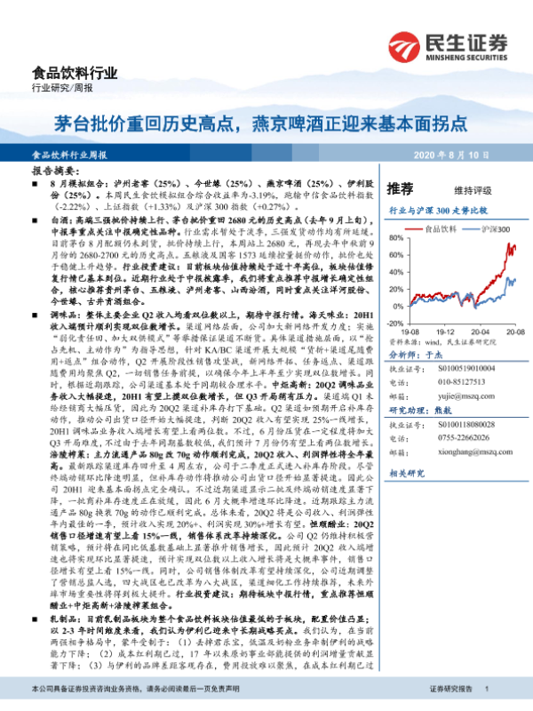 【民生证券】【20200810】20200810-民生证券-食品饮料行业周报:茅台批价重回历史高点,燕京啤酒正迎来基本面拐点-34页
