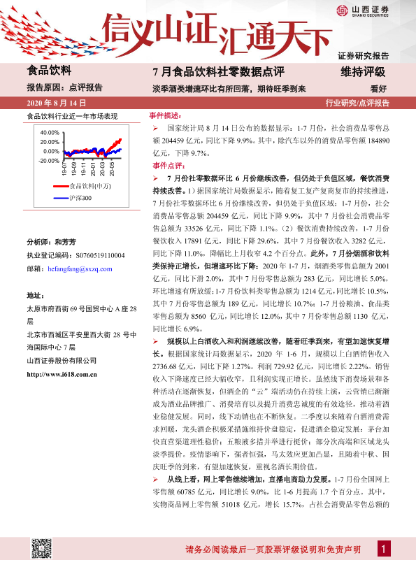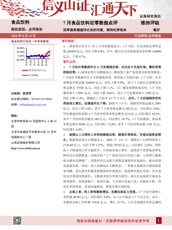 【山西证券】【20200814】20200814-山西证券-7月食品饮料社零数据点评:淡季酒类增速环比有所回落,期待旺季到来-7页
