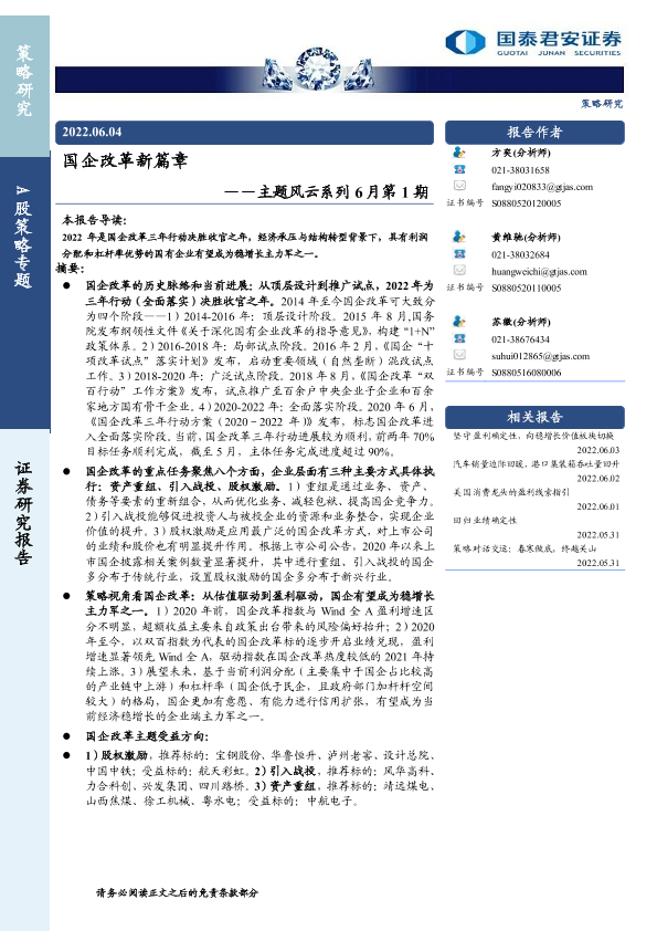 【国泰君安证券】【20220604】国企改革新篇章-17页
