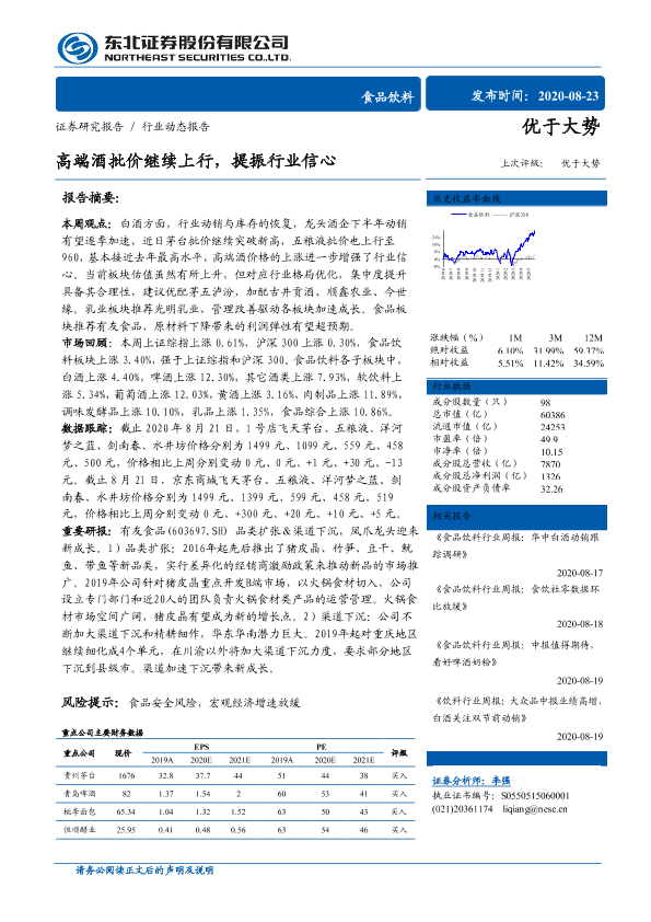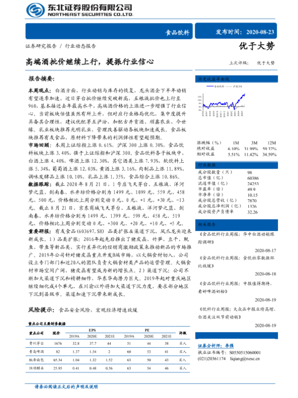 【东北证券】【20200823】20200823-东北证券-食品饮料行业动态报告:高端酒批价继续上行,提振行业信心-14页