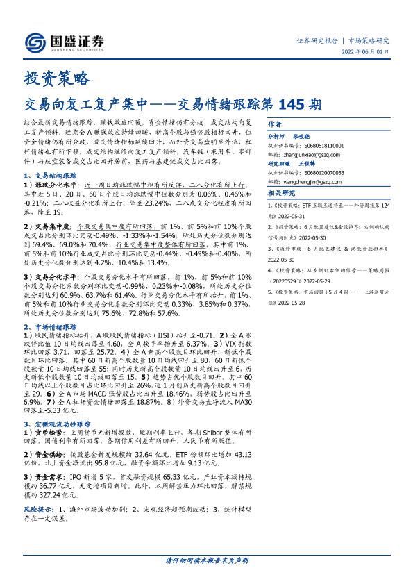 【国盛证券】【20220601】交易情绪跟踪第145期:交易向复工复产集中-15页