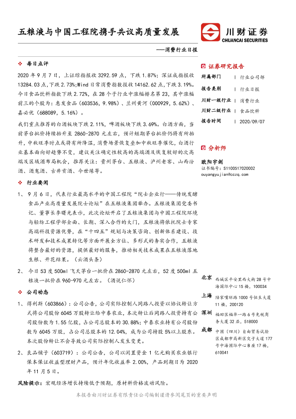 【川财证券】【20200907】消费行业日报:五粮液与中国工程院携手共议高质量发展-3页