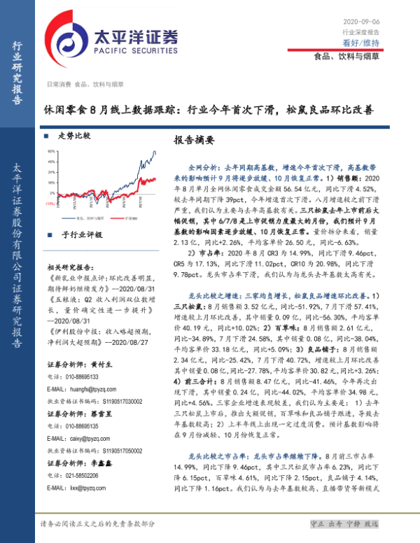【太平洋证券】【20200906】休闲零食8月线上数据跟踪:行业今年首次下滑,松鼠良品环比改善-8页