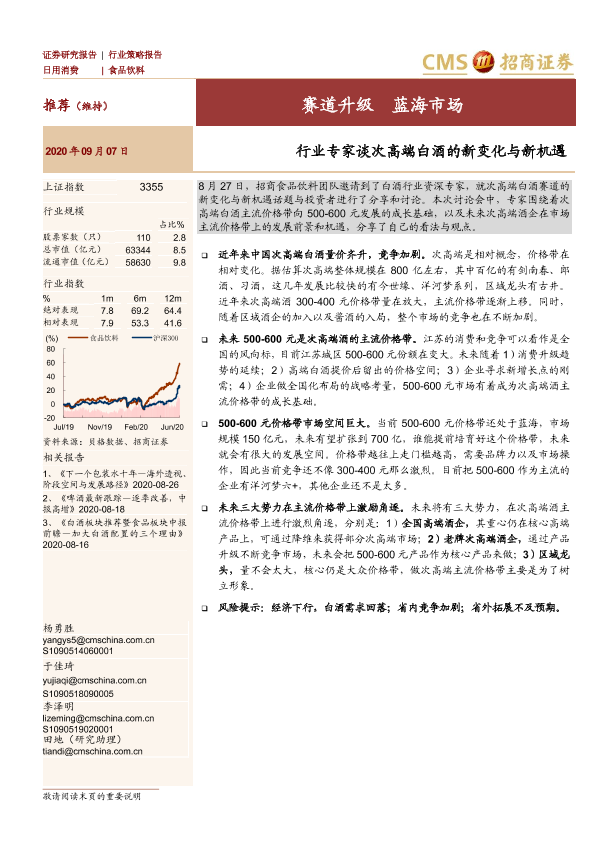 【海通证券】【20200907】行业专家谈次高端白酒的新变化与新机遇:赛道升级 蓝海市场-8页