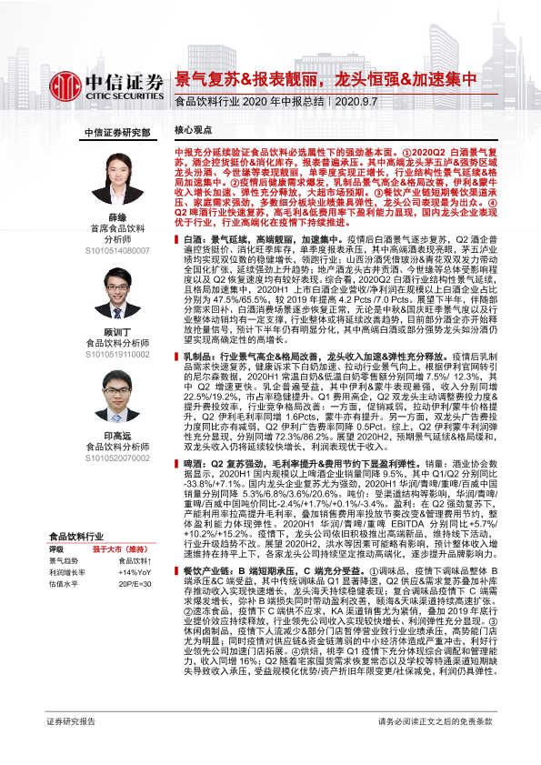 【中信证券】【20200907】食品饮料行业2020年中报总结:景气复苏&报表靓丽,龙头恒强&加速集中-23页
