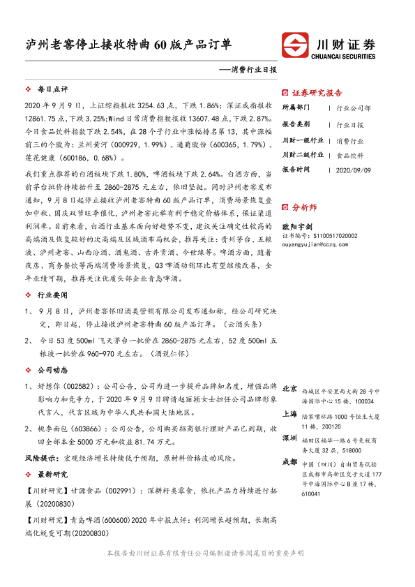 【川财证券】【20200909】消费行业日报:泸州老窖停止接收特曲60版产品订单-3页
