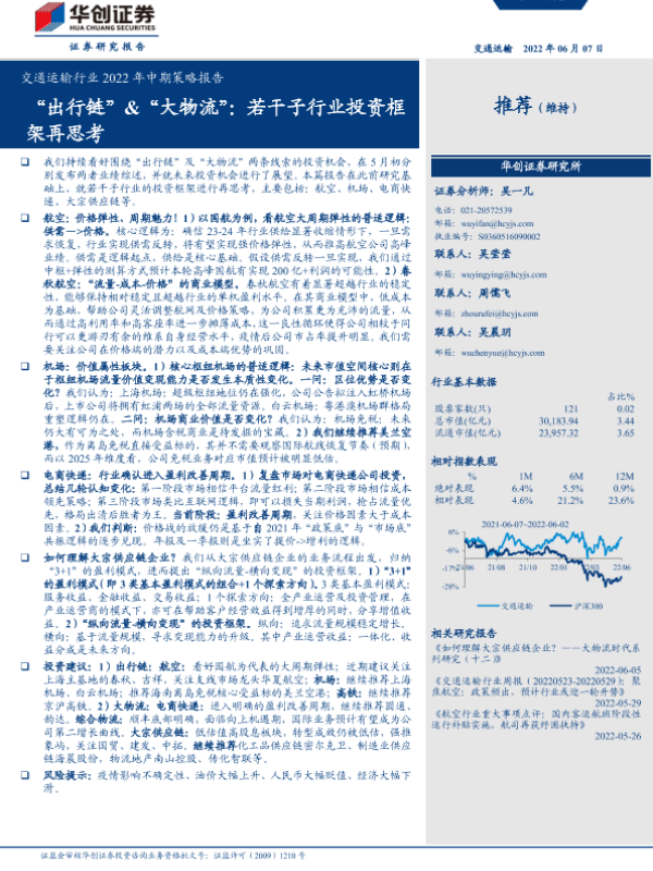 【华创证券】【20220607】交通运输行业2022年中期策略报告:“出行链”&“大物流”,若干子行业投资框架再思考-35页
