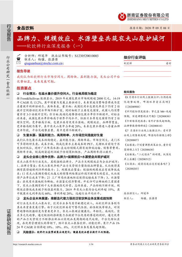 【浙商证券】【20200908】软饮料行业深度报告(一):品牌力、规模效应、水源壁垒共筑农夫山泉护城河-34页
