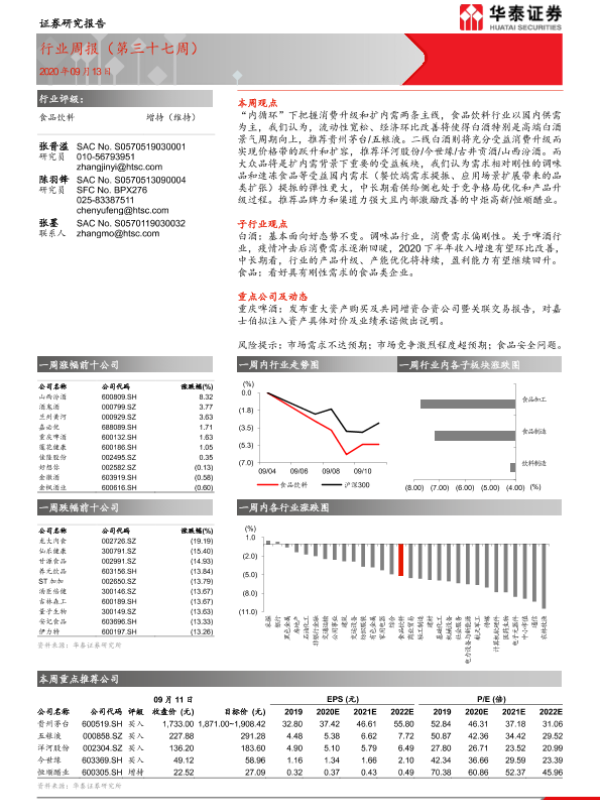 【华泰证券】【20200913】20200913-华泰证券-食品饮料行业周报(第三十七周)-12页