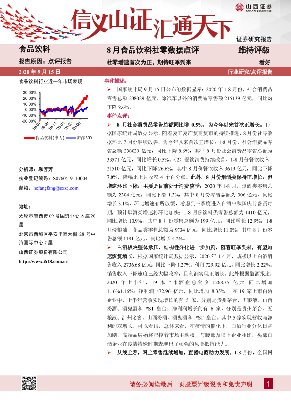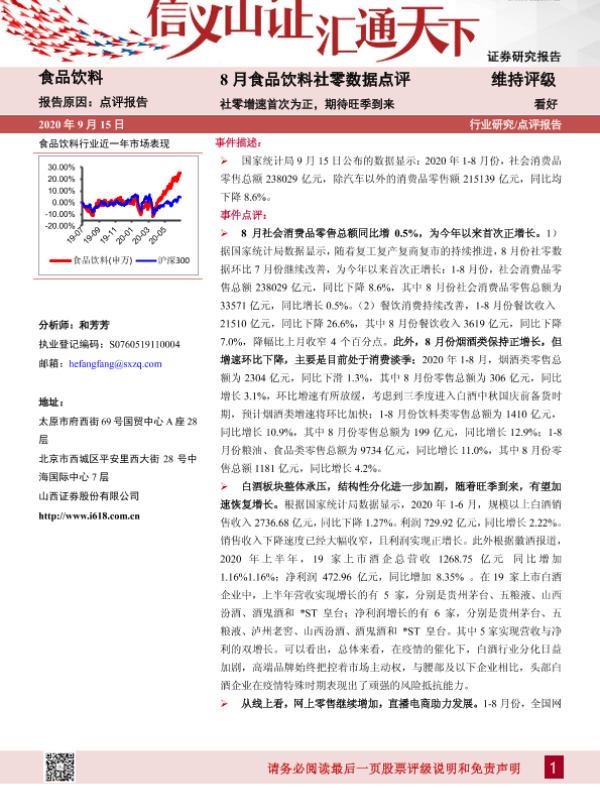【山西证券】【20200915】20200915-山西证券-8月食品饮料社零数据点评:社零增速首次为正,期待旺季到来-6页