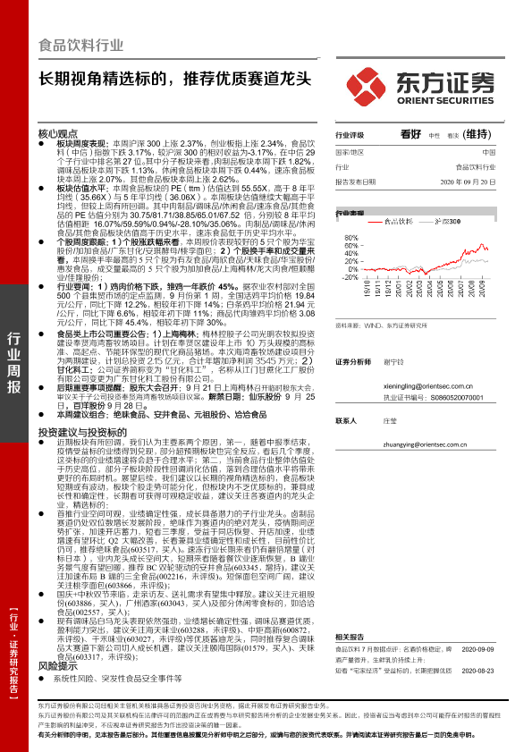 【东方证券】【20200920】20200920-东方证券-食品饮料行业周报:长期视角精选标的,推荐优质赛道龙头-12页