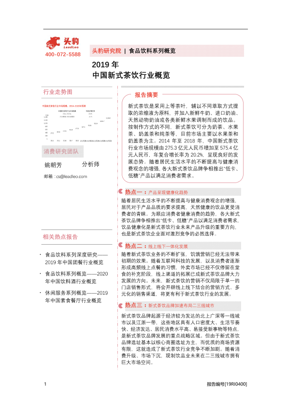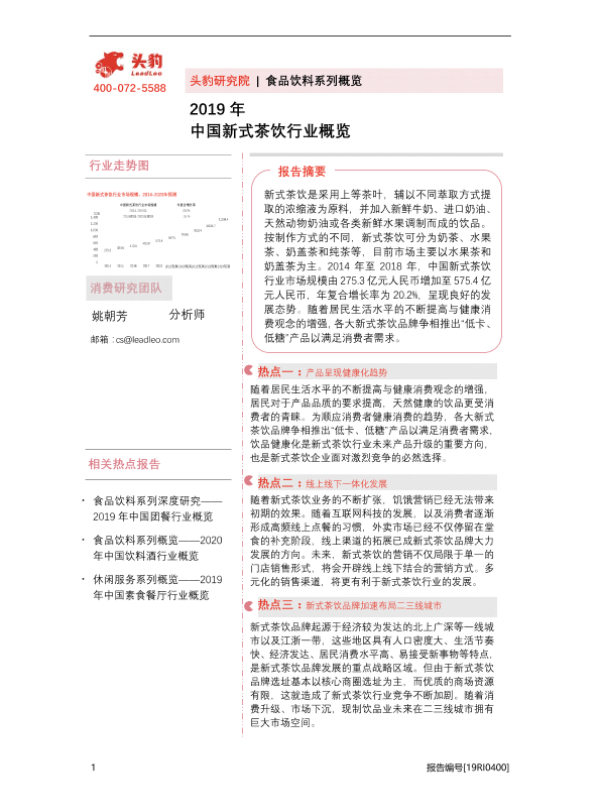 【头豹研究院】【2019】2019年中国新式茶饮行业概览-34页