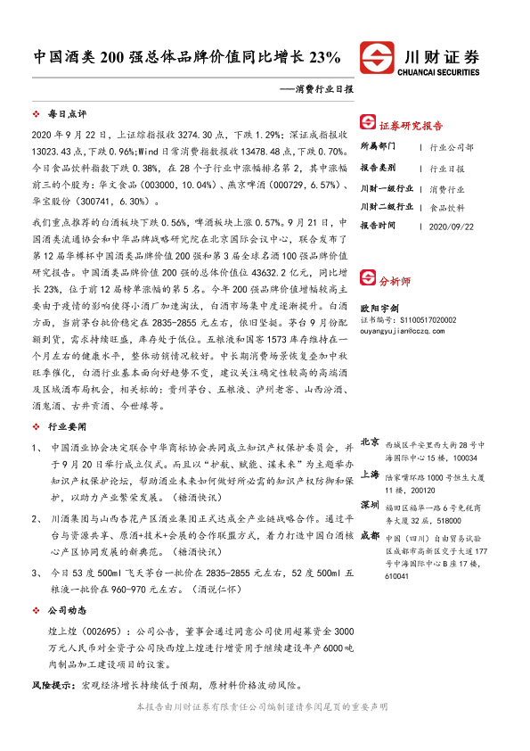 【川财证券】【20200922】消费行业日报:中国酒类200强总体品牌价值同比增长23%-3页