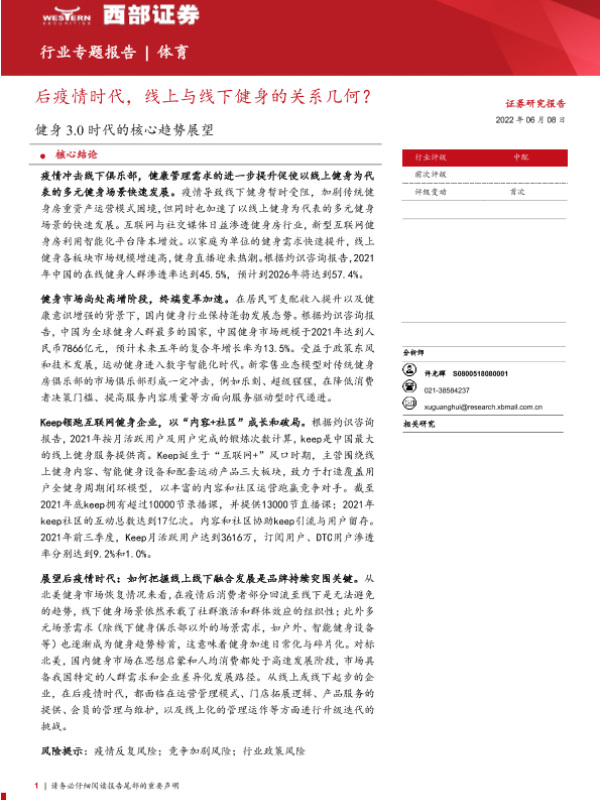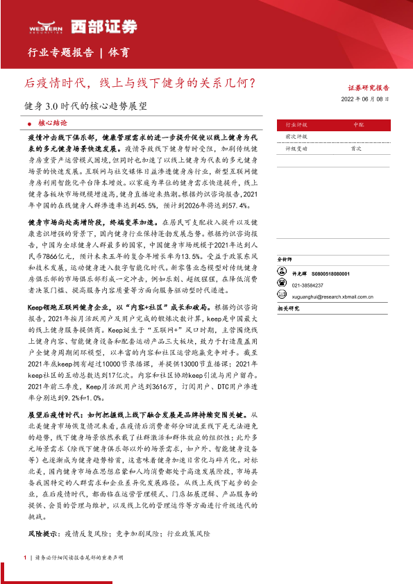 【西部证券】【20220608】体育行业健身3.0时代的核心趋势展望:后疫情时代,线上与线下健身的关系几何?-43页