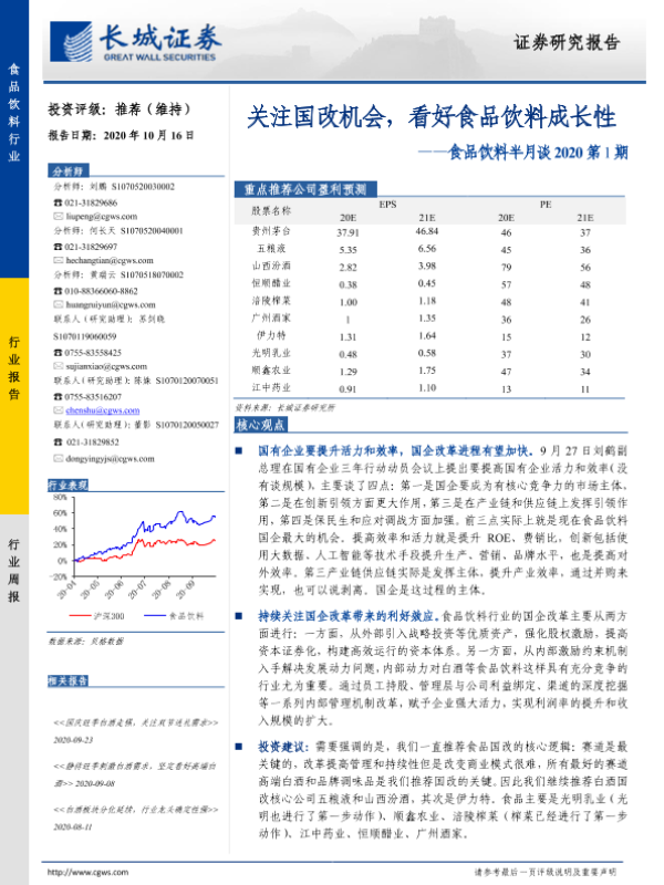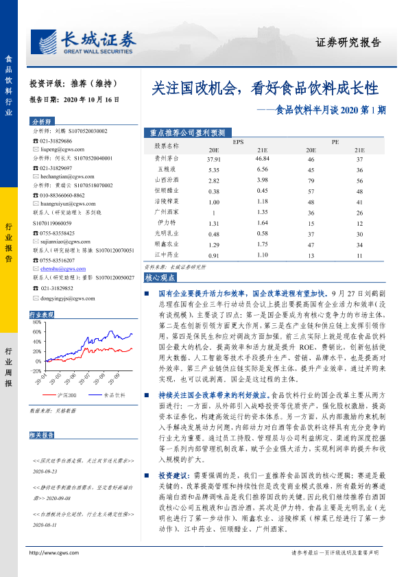 【长城证券】【20201016】20201016-长城证券-食品饮料半月谈2020第1期:关注国改机会,看好食品饮料成长性-15页