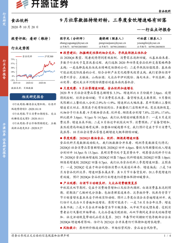 【开源证券】【20201020】9月社零数据持续好转,三季度食饮增速略有回落-4页