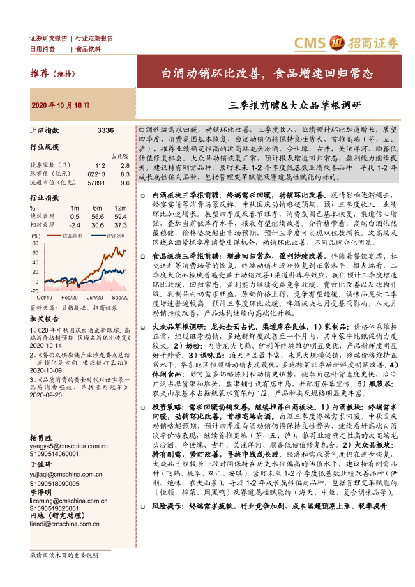 【海通证券】【20201018】20201018-招商证券-三季报前瞻&大众品草根调研:白酒动销环比改善,食品增速回归常态-23页