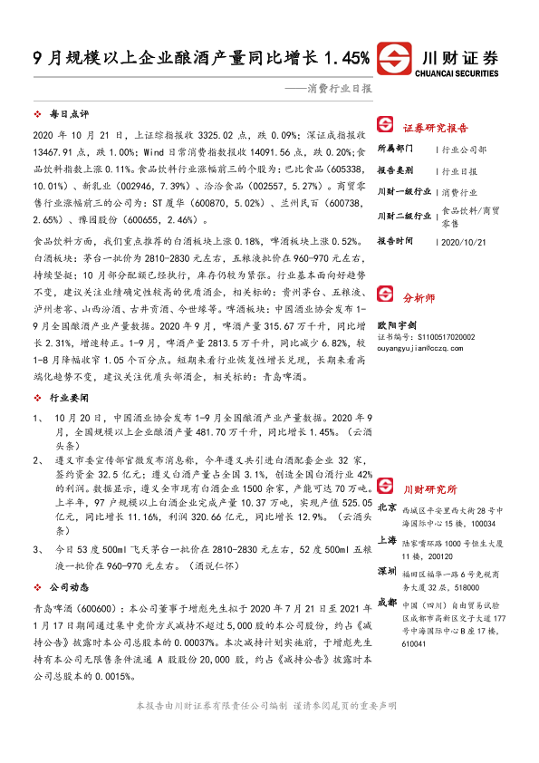【川财证券】【20201021】9月规模以上企业酿酒产量同比增长1.45%-4页