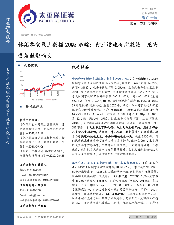 【太平洋证券】【20201020】休闲零食线上数据20Q3跟踪:行业增速有所放缓,龙头受基数影响大-26页