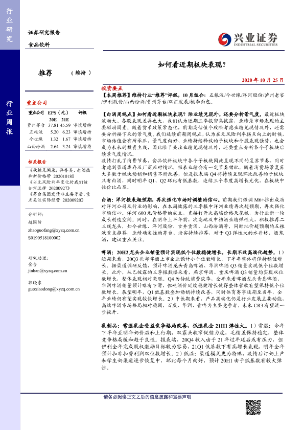 【兴业证券】【20201025】20201025-兴业证券-食品饮料行业周报:如何看近期板块表现?-18页
