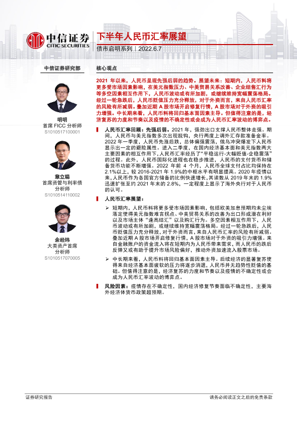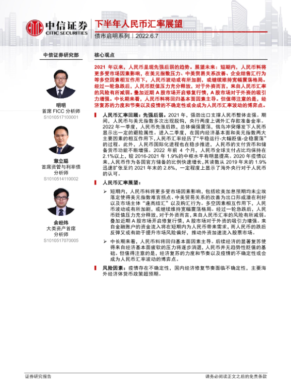 【中信证券】【20220607】债市启明系列:下半年人民币汇率展望-32页