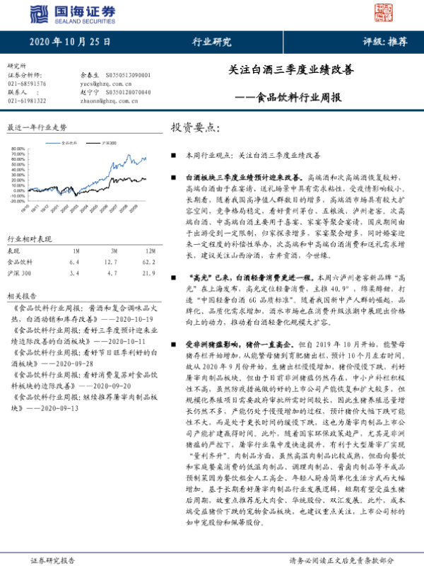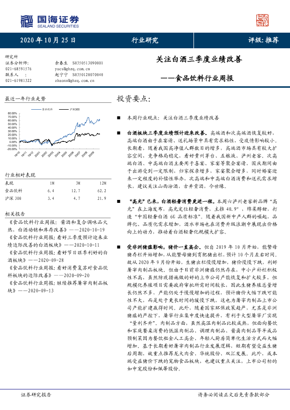 【国海证券】【20201025】食品饮料行业周报:关注白酒三季度业绩改善-24页