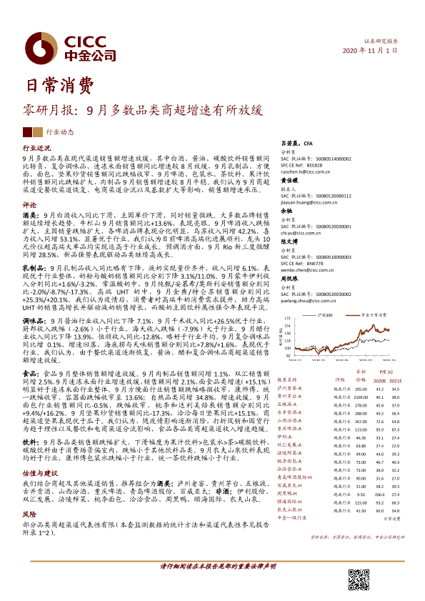 【中金公司】【20201101】零研月报:9月多数品类商超增速有所放缓-27页