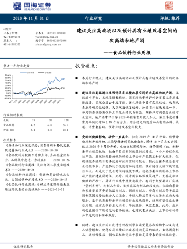 【国海证券】【20201101】20201101-国海证券-食品饮料行业周报:建议关注高端酒以及预计具有业绩改善空间的次高端和地产酒-24页