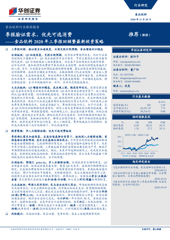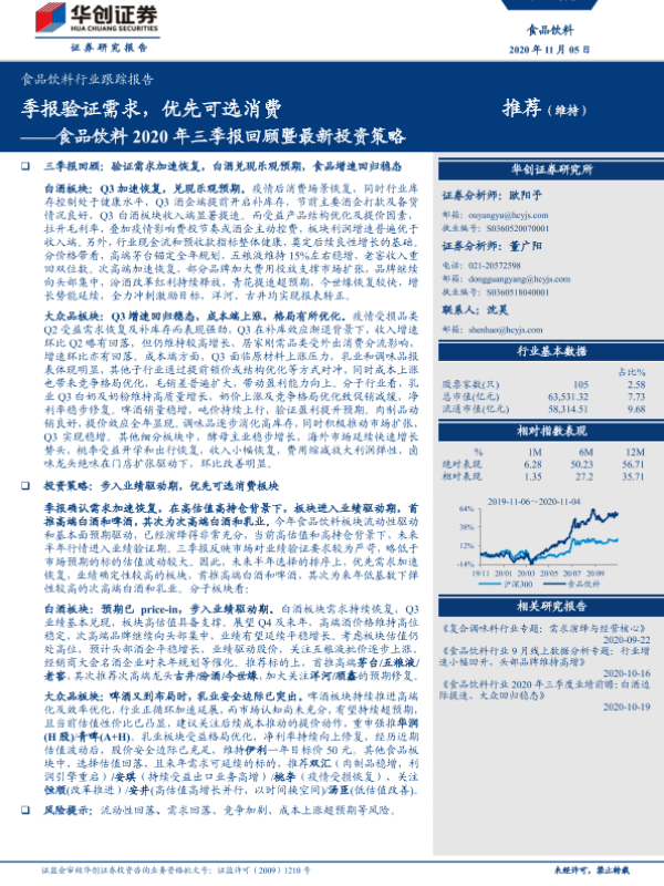 【华创证券】【20201105】食品饮料2020年三季报回顾暨最新投资策略:季报验证需求,优先可选消费-18页