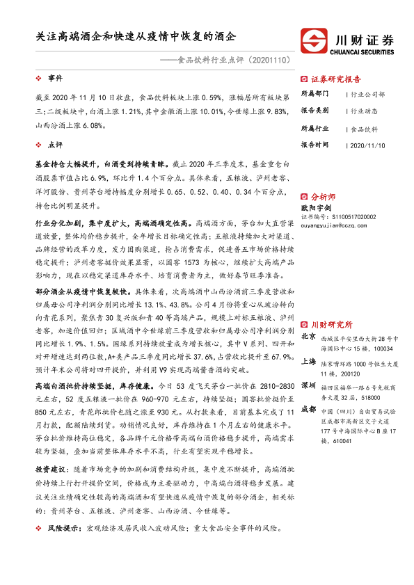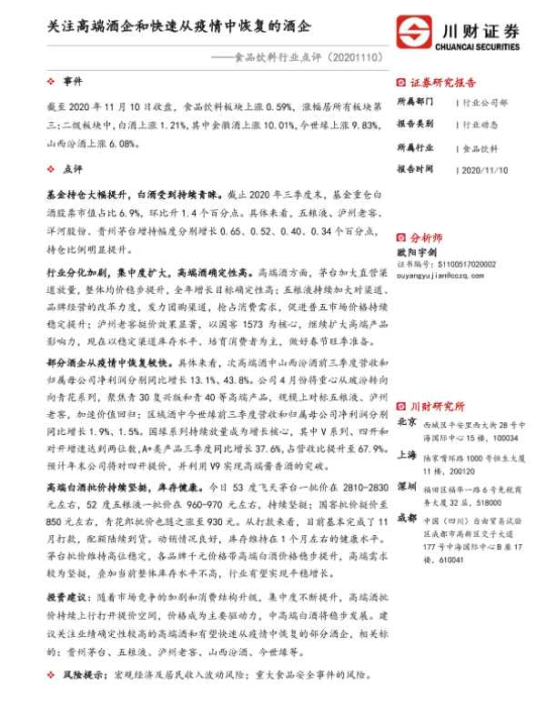 【川财证券】【20201110】食品饮料行业点评:关注高端酒企和快速从疫情中恢复的酒企-2页
